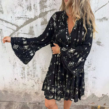 Embrace effortless charm with Elara, an elegant boho midi dress for women that blends relaxed sophistication with a hint of golden radiance. Designed with a flowing silhouette and delicate gilded accents, this dress captures the essence of sunlit days and breezy evenings. Its pleated front and gentle empire waist create a flattering, feminine shape that moves gracefully with every step. Perfect for beach gatherings, brunches, or sunset outings, Elara adds a touch of effortless beauty to any moment.