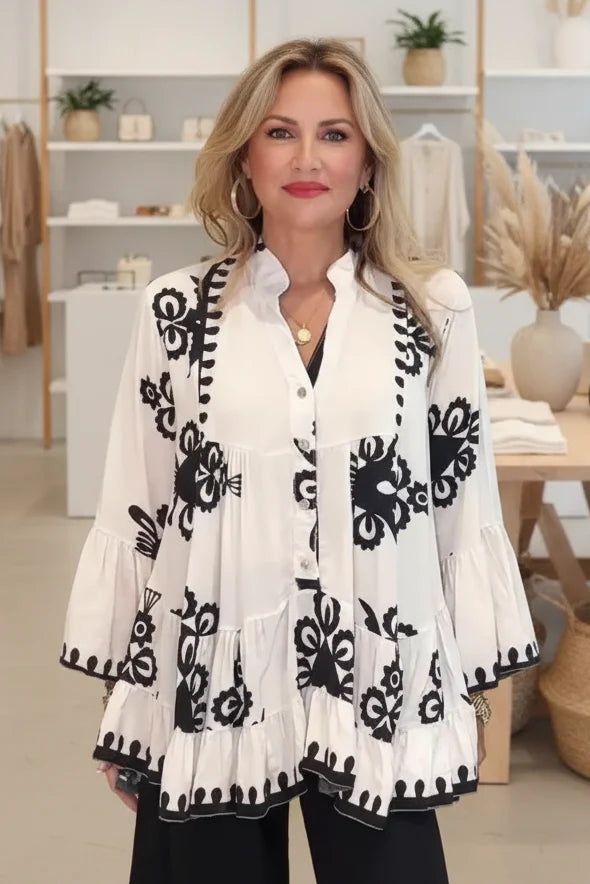 Discover effortless elegance with Marisol, an embroidered boho tunic blouse for women that captures relaxed charm and modern grace. Featuring intricate embroidery, long flared sleeves, and a flowy, comfortable silhouette, this blouse adds a touch of artistry to any look. Perfect for layering or wearing on its own, Marisol transitions beautifully from casual afternoons to weekend getaways.
